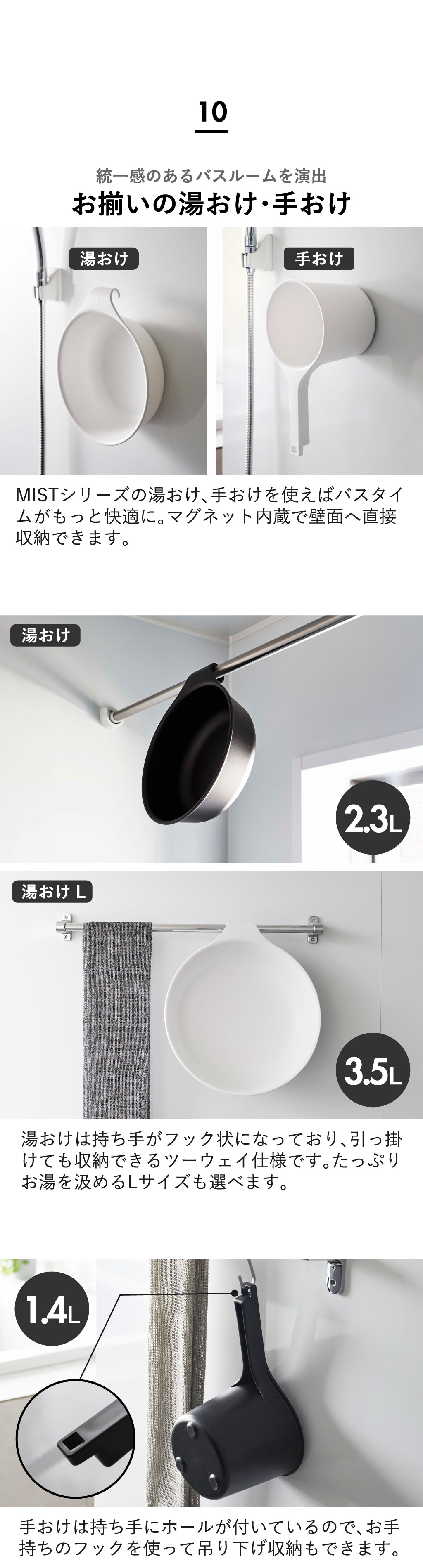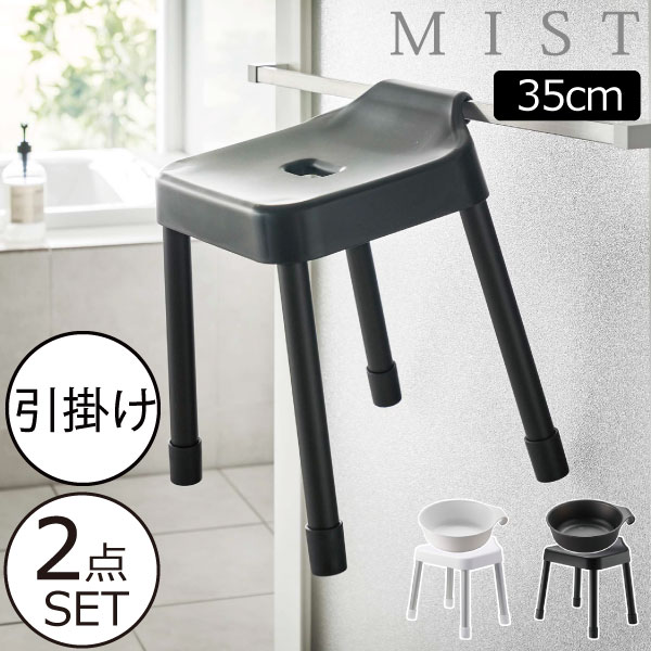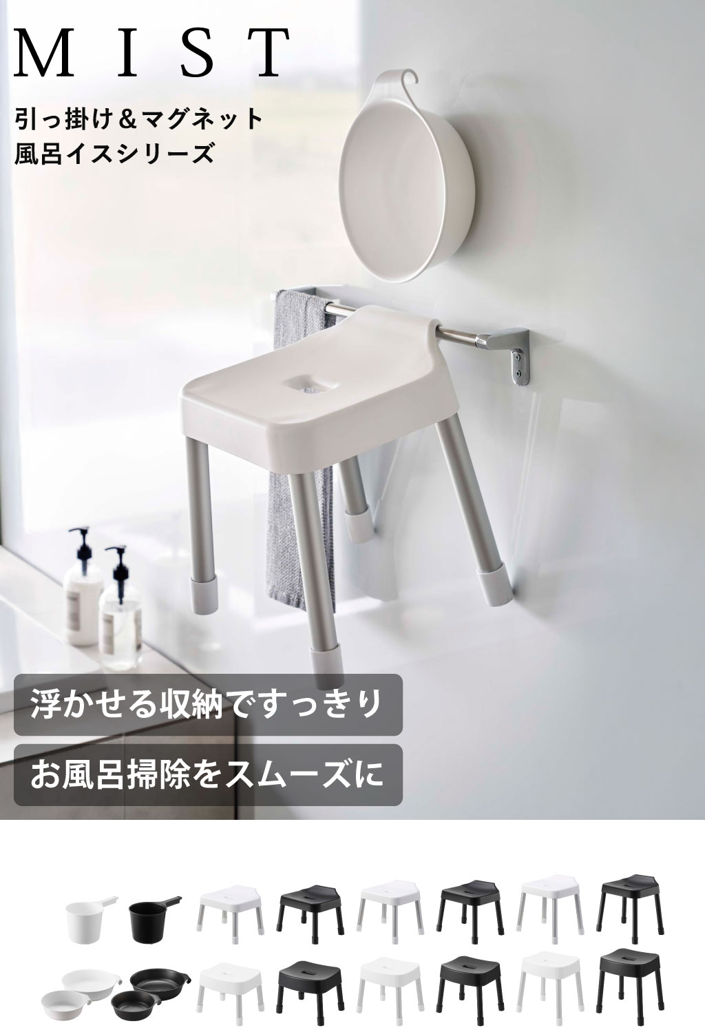 風呂椅子 35cm バスチェアセット おしゃれ 洗面器 磁石 浮かせる 山崎実業 引っ掛け風呂イス ミスト SH35+マグネット&引っ掛け湯おけ ミスト MIST