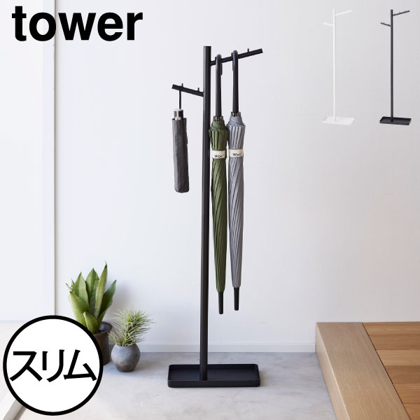 玄関の省スペースに設置できる奥行き約20cmと薄型のツリー型傘立てです。ストッパー付きで一本ずつ収納すれば、傘同士の間隔が空くので風通しがよく、乾きやすいです。長傘を5本収納できます。子ども用から大人用、折り畳み傘など傘の長さに合わせて高さ違いのバーに分けて収納可能です。靴ベラやほうきなどの玄関小物の吊り下げ収納にも。底面には濡れた傘の水滴をキャッチする水受けトレー付きなので、玄関がびしょびしょになる心配ありません。トレーのシリコーンマットは取り外してお手入れができ、清潔を維持できます。