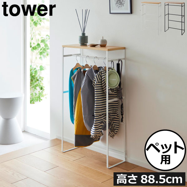 ペットの洋服やお散歩グッズをまとめて収納できるハンガーラックです。ミディアムサイズは小型犬〜中型犬、トールサイズは胴長犬・大型犬の洋服収納に適したサイズです。ペット用の小さいハンガーが掛けやすい細めのハンガーパイプで、取り出しもスムーズです。ラック側面のお好みの位置に取り付けられるフックで、リードなどを掛けることができます。天板はおやつやおもちゃの収納だけでなく、時計や消臭剤などを置いてコンソールテーブルとしてもお使いいただけます。トールサイズは、ベビー服の収納にも◎。天然木の天板とスチール製のハンガーラックの組み合わせが、リビングや玄関など様々な空間に馴染みます。ハンガーラックの色はホワイトとブラックの2色からお選びいただけます。