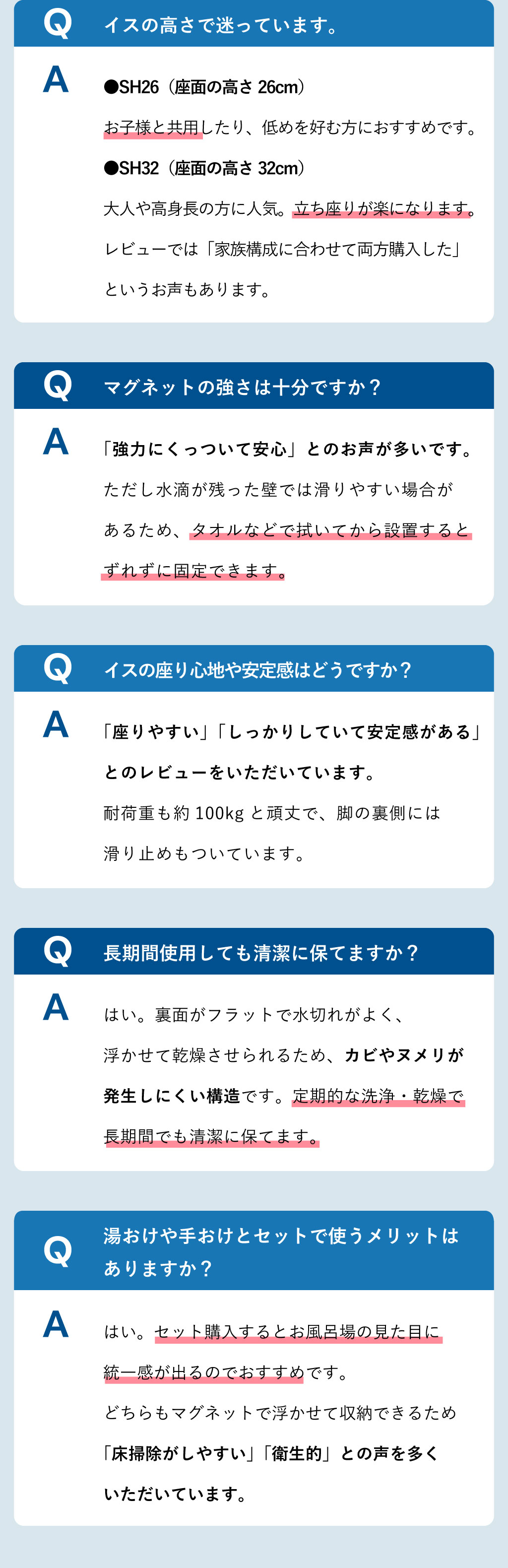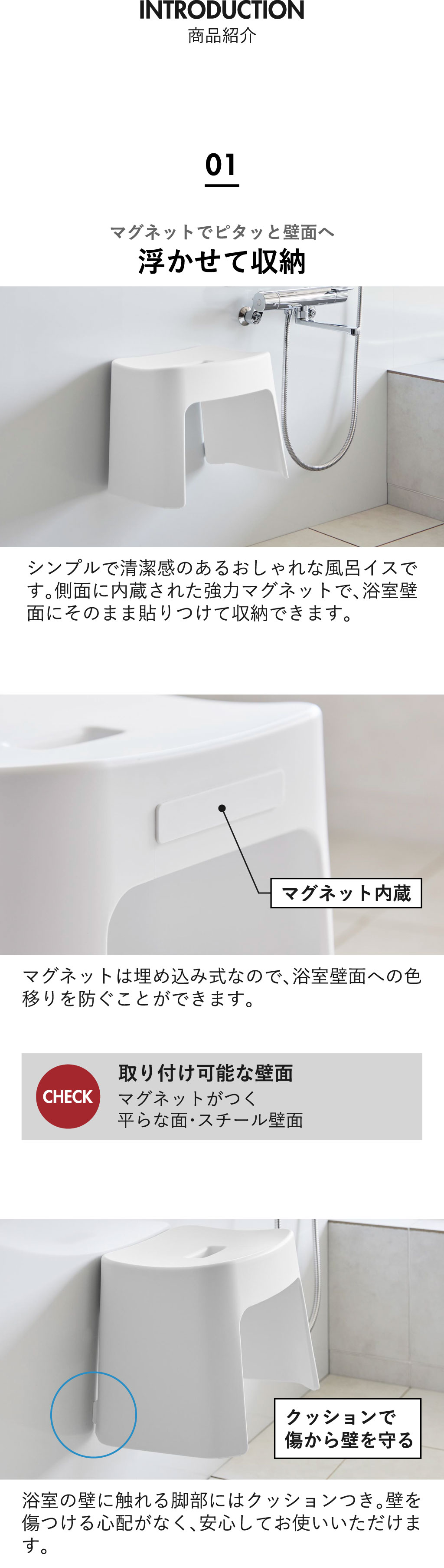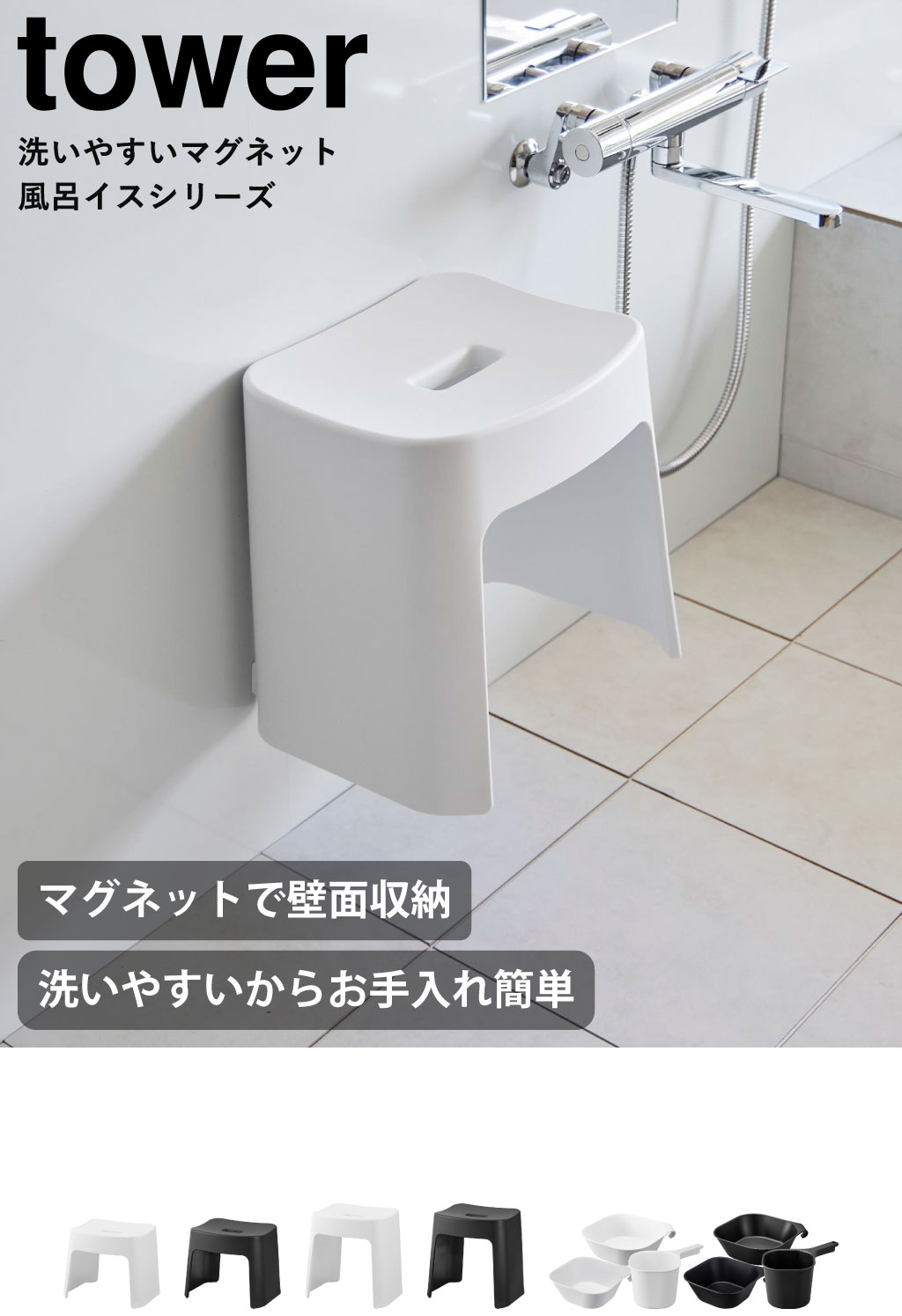 洗いやすいマグネット風呂イス tower