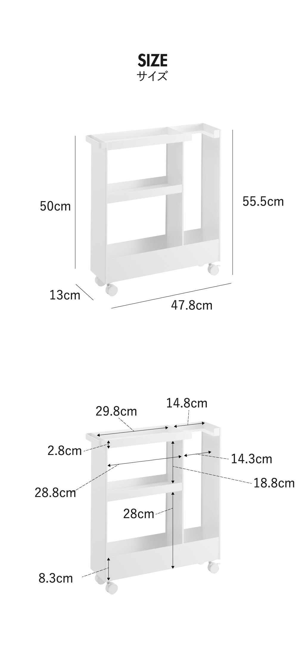 | サイズ | 約幅13cm×奥行き47.8cm×高さ55.5cm |