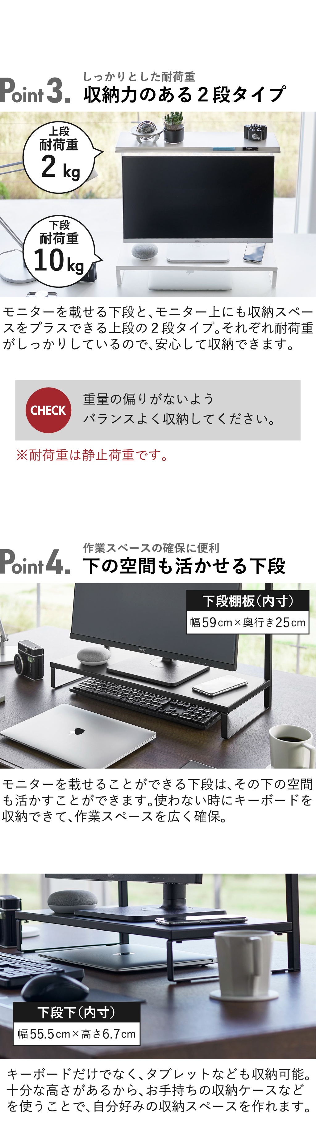 収納力抜群な2段タイプのモニター台