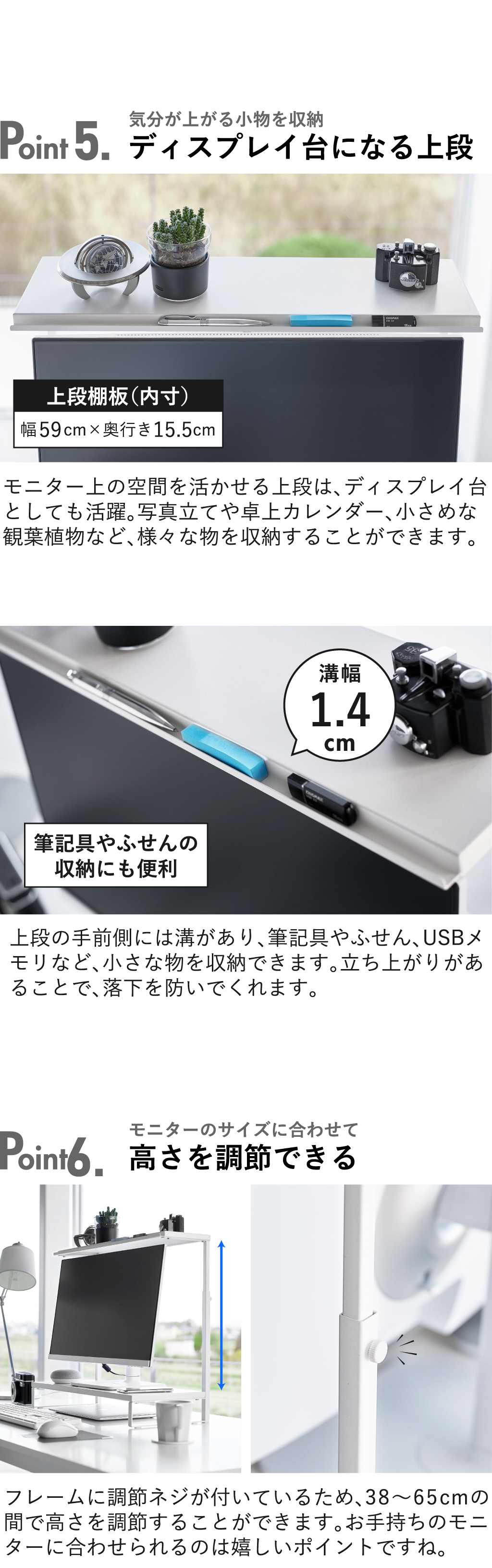 モニターに合わせて高さを調節できる