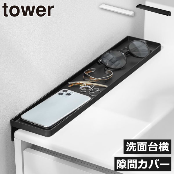 洗面台横の隙間に設置できる、towerシリーズのおしゃれな洗面台横収納棚です。歯ブラシやコップなどを収納する、スリムな小物置きとして活躍します。スマホやアクセサリーなどの一時置きにもおすすめです。洗面台横収納棚を設置することで、洗面台横の空間を埋められて、洗面小物の落下防止になります。洗面台横収納棚は、洗面台と壁の隙間に差し込むだけで簡単に設置できます。トレイの奥行きは約44cmと、収納力も抜群で、洗面台の奥の空間まで活用できます。裏側にはシリコーン製のストッパー付き。台をしっかり固定できるので安心です。洗面台横収納棚は軽量なプラスチック製だから、お手入れも簡単にできます。モノトーンのシンプルなデザインで、さまざまなインテリアに馴染む洗面台横収納棚。カラーはホワイトとブラックの2色からお選びいただけます。
