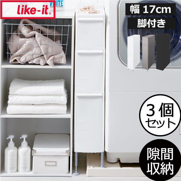 収納ボックス 隙間収納 約幅20cm 3個セット ホース アジャスター付き トールストッカー like-it ライクイット