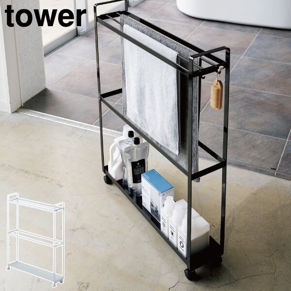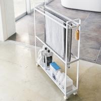 シンプルで清潔感のある、ワゴンタイプのバスタオルハンガーです。スリムなサイズ感で、約15cmの隙間にぴったりと収まります。洗濯機横のデッドスペースを有効に使うことができます。