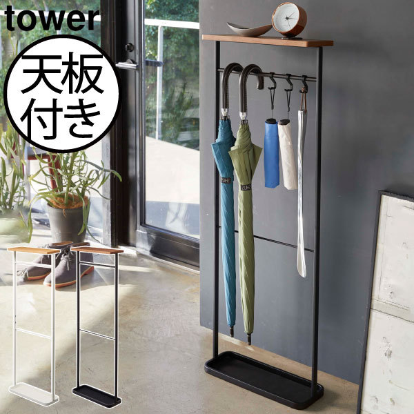 傘立て おしゃれ 北欧 スリム コンパクト アンブレラスタンド ハンガー 木製 傘スタンド 傘置き 傘掛け 玄関収納 山崎実業 天板付き引っ掛け傘立て タワー tower