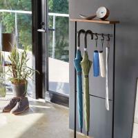 かさばる傘をスマートに収納してくれる、引っ掛けタイプの傘立てです。デッドスペースになりがちな傘立て上のスペースに、鍵や印鑑などの小物を収納できる天板付き。玄関周りをすっきりとさせてくれるから、急な来客時も安心です。