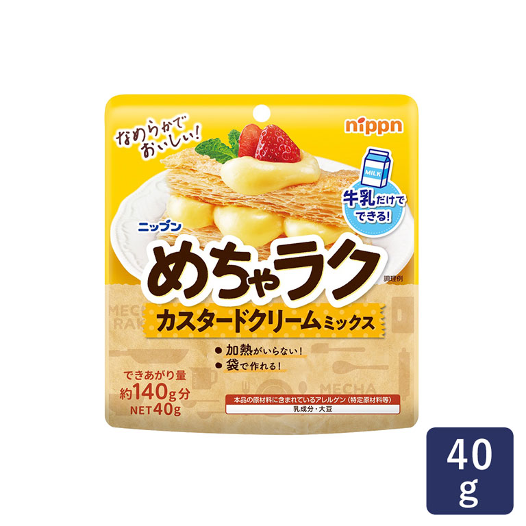 パッケージデザインが一時的に変更されます。 お届けさせていただくタイミングによっては、商品画像と異なる場合がございますが、中身等の変更はございませんので、予めご了承くださいませ。卵もお鍋も使わず、冷たい牛乳と混ぜるだけで簡単にカスタードクリームが作れます。シュークリームやケーキ、大判焼きやたいやきにもおすすめです。