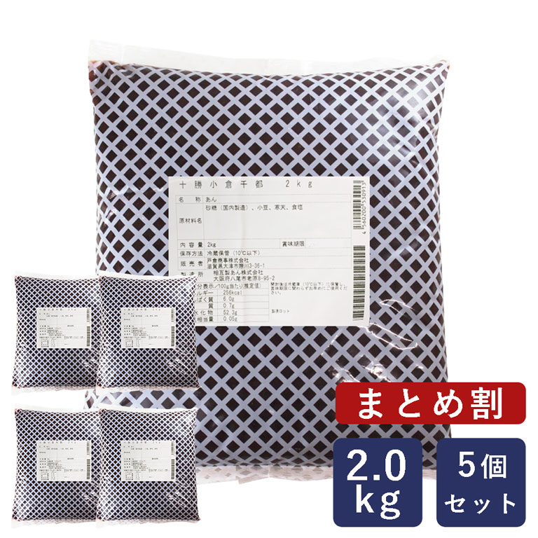 十勝小倉千都 2kg各種北海道十勝産の小豆で作られた小倉あんです。包餡する際に使いやすい程よい硬さに仕上げられているので、あんパンやおはぎ、大福など幅広いパンやお菓子にお使いいただけます。