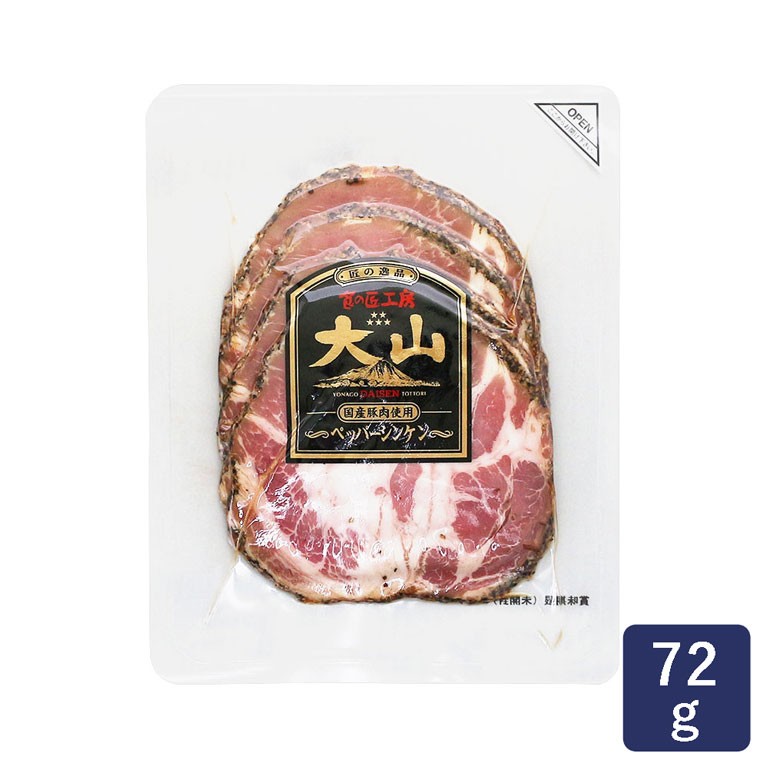 | 豚肩ロース肉(国産)、糖類(粉末水あめ、砂糖)、黒コショウ、食塩/リン酸塩(Na)、調味料(アミノ酸)、酸化防止剤(ビタミンC)、発色剤(亜硝酸Na)、(一部に豚肉を含む) |