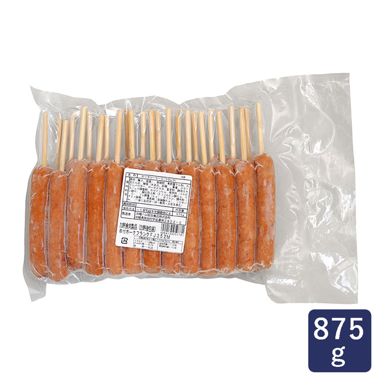 串を刺して冷凍されている便利なポークフランクです。パン生地を巻けばフランクロール、揚げ生地を付ければアメリカンドッグを手軽に焼いていただけます。