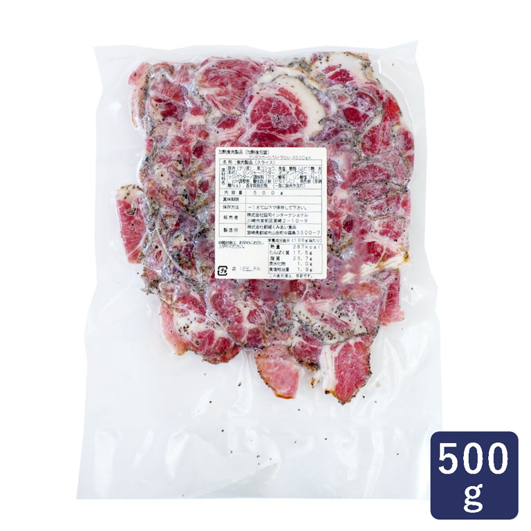 | 豚肉(チリ産)、黒コショウ、食塩、糖類(ぶどう糖、水あめ)、ジンジャーパウダー、オニオンパウダー、ガーリックパウダー / 調味料(アミノ酸等)、リン酸塩(Na)、pH調整剤、酸化防止剤(ビタミンC)、発色剤(亜硝酸Na)、香辛料抽出物、(一部に豚肉を含む) |