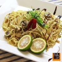 ポルチーニと柑橘のさわやかぺペロンチーノぺペロンチーノを試作しました。弱火から中火で、冷凍のまま使用することでじっくりと旨みが溶け出してくれます。