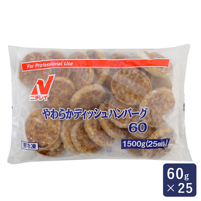 鶏肉を国産限定にし牛脂・豚脂を加え、ふっくら厚みのあるハンバーグです。こだわりの製法でジューシーかつ肉のうまみたっぷりに仕上げられています。