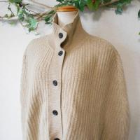 【ポイント】セオリーリュクスのレディース用ニットケープになります。お色はベージュで、前ボタン付きのデザインです。