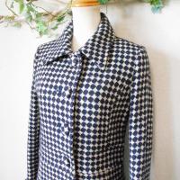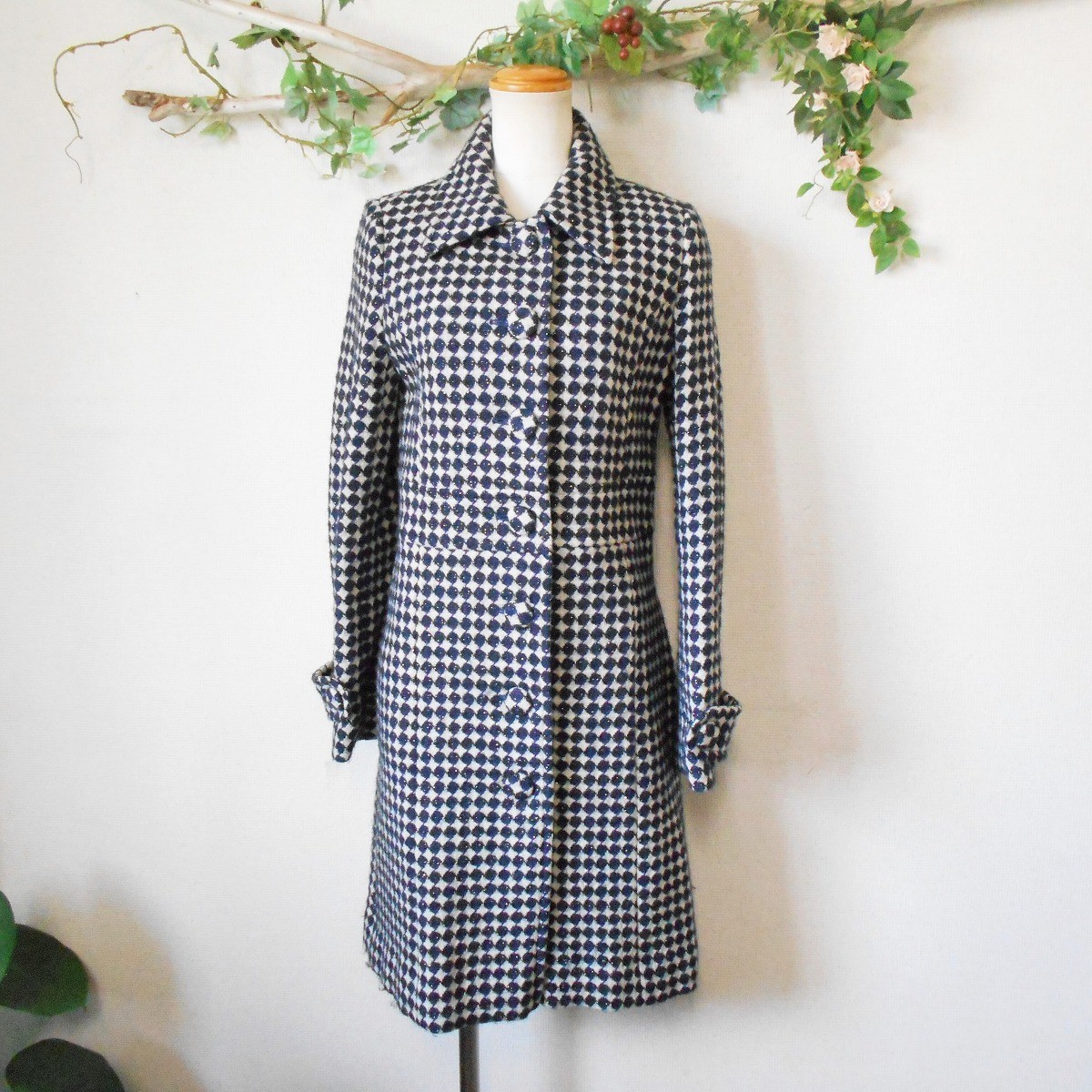 【ポイント】Realのレディース用コートになります。お色は薄いベージュ系のベースカラーで、紺色の水玉風の柄が全体に入っています。全体に金ラメも入っていて、とってもお洒落な一着です。