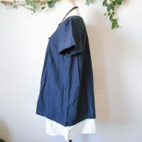【ポイント】No geamのレイヤード風チュニックになります。お色はネイビーでインナーは白色になります。麻混の春夏向きで、首元にはレースガス用された、ナチュラルな雰囲気のとっても可愛い一着です。