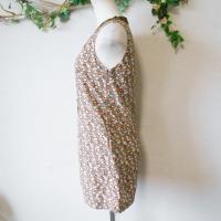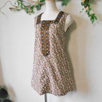 【ポイント】ランディパーティ、レディース用チュニックになります。お色はブラウンベースで多色使用のお花のプリントが全体に入っています。襟ぐりから前にかけて装飾が施された、とってもお洒落な一着です。