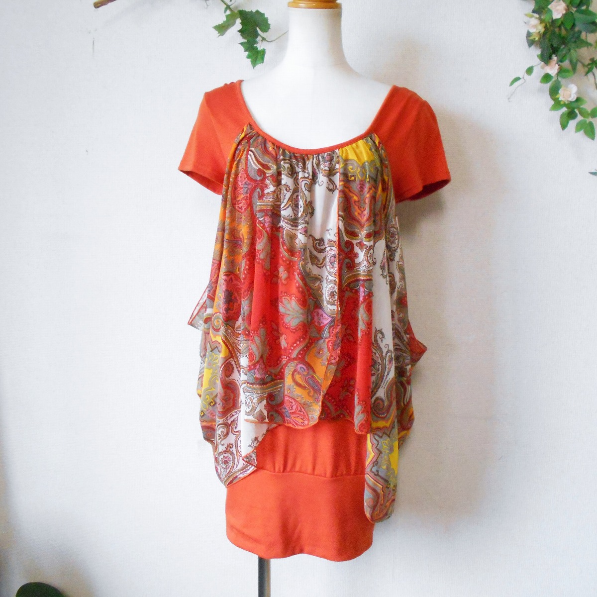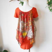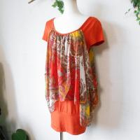 【ポイント】フラワーサークルのチュニックワンピースになります。お色はオレンジ系のベースカラーで夏向きです。