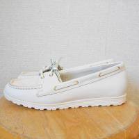 【ポイント】コスタスメラルダのレディース用デッキシューズになります。お色は白色系で部分的にハラコが使用された、とってもお洒落なデザインです。