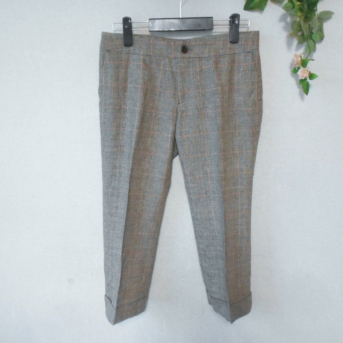 【ポイント】ケティのクロップドパンツになります。お色は多色使用のグレンチェックで、全体的にはベージュ系のイメージです。