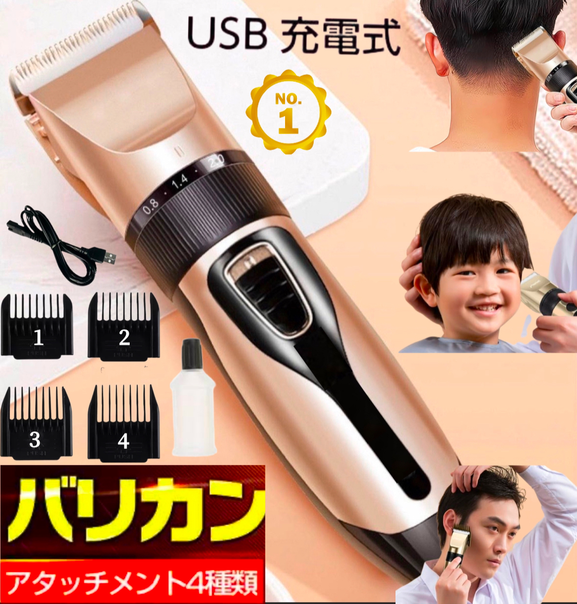 子供大人兼用 電気ばりかん、USB充電式 電動バリカン hair clipper ヘアカット、
