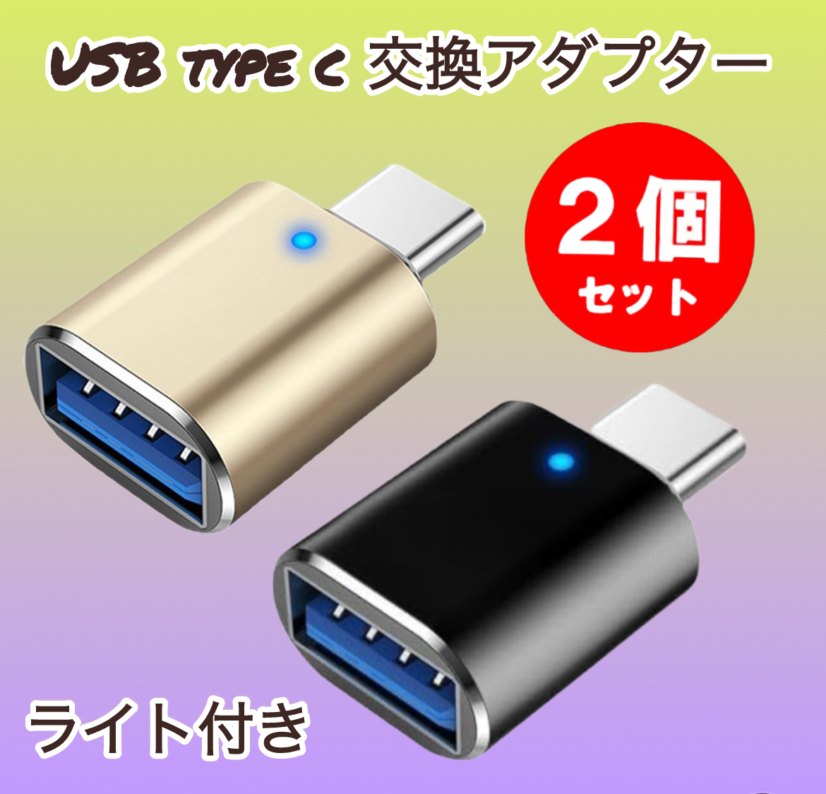2個セット※ライト付きUSBタイプc 変換アダプタ タイプa 変換コネクタ type-c to USB A データ転送 写真 動画 転送 充電-USB3.0
