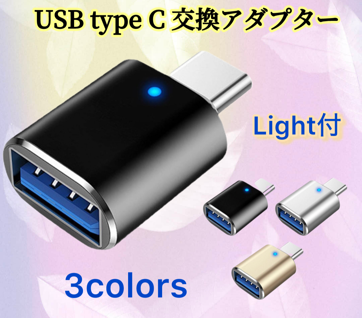 ライト付きUSB タイプc 変換アダプタ タイプa 変換コネクタ type-c to USB A データ転送 写真 動画 転送 充電-USB3.0.