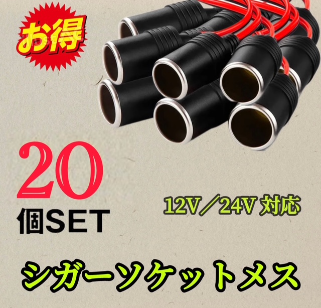 20個セット※OHシガーソケット メス 12V 24V 電源ケーブル付 30cm ETC ドライブレコーダー 増設 電源 シガーライター 配線 ドラレコ 延長