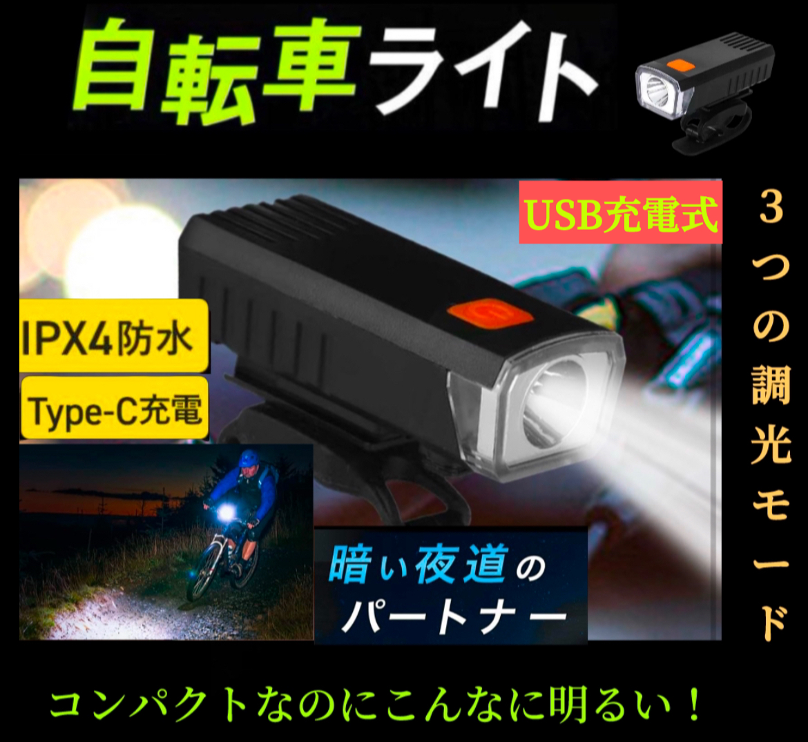USB充電式 ライト LED自転車 ライト 防水 らいと 自転車ライト USB充電 自転車ライト 自転車用ライト 前フロントライト