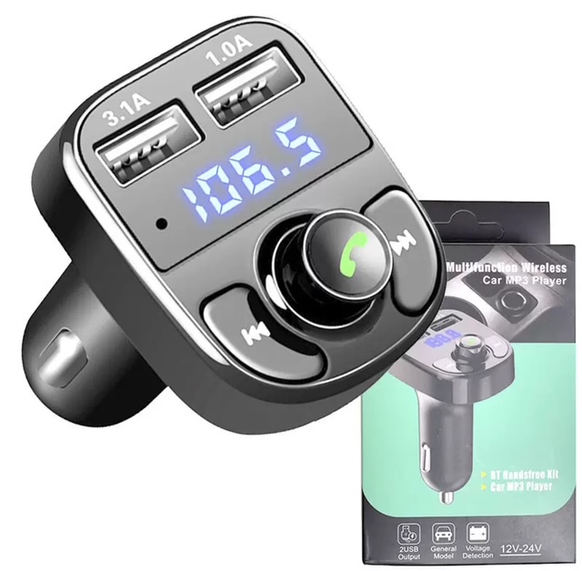 車のシガーソケットに差し込んで、スマートフォンの音楽やYouTubeの音声を車のFMラジオで鳴らすための商品です。マイクロSDに書き込んだMP3やWMAの音楽データも再生でき、ハンズフリー通話も可能です。当商品スマートフォンはBluetooth接続なので車のオーディオにAUX(外部入力)が無くても大丈夫!イヤホンの端子が無いiPhoneでも音楽や動画の音声を車のスピーカーからワイヤレスで再生!USB2口+Type-c 1口で充電しながら使う事が出来ます!FMラジオが使える車なら、ボロい会社の社用車や営業車、配送用車両でもお気に入りの音楽が楽しめ、スマホや他のデジタル機器の充電ができます!仕事で社用車を長時間運転する方には特にオススメです!12V車、24V車両方に対応していますので、車種を気にせずお使いいただけます!【使用方法】(1)本体を車のシガーソケットに差し込む(2)スマホでBluetoothを検出しペアリング(3)本体のFM周波数とカーラジオのFM周波数を合わせるペアリング後の2回目以降の使用時は自動で接続になります。