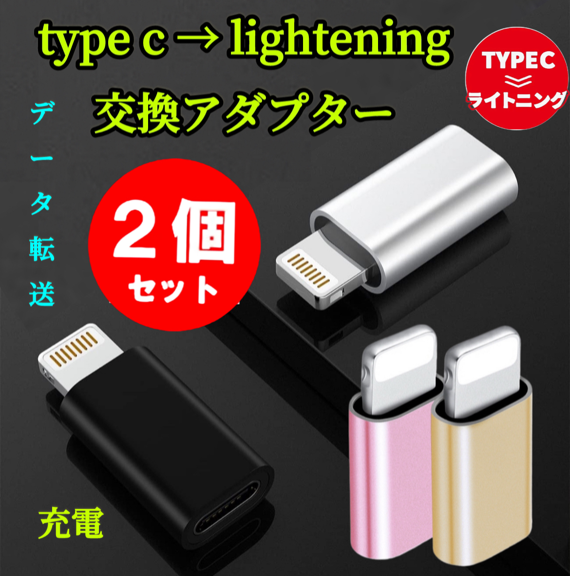 2個※Type-C Lightning変換アダプター iPhoneコネクター USB C タイプcライトニング 変換コネクター MacBook、iPad等type-c機種対応高速データ伝送