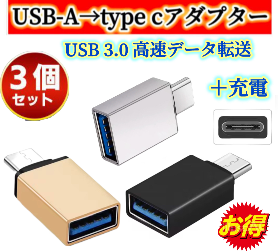 3個セット※USB to Type-C 変換アダプター OTG機能付き USB C タイプc 変換コネクター MacBook、iPad等type-c機種対応高速データ伝送