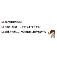 | 特徴 | 悪性腫瘍を発症した際に、からだの浄化を助け、免疫機能を妨げるものを減らし、異形細胞と闘っている身体を支えるお手伝いをします。 |
