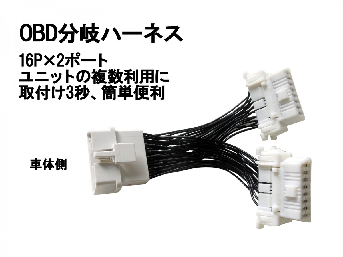 16+16ピン 2ポート 分岐ハーネス。 1ヶ所しかないOBD2コネクタを分岐させ2ヶ所に。 挿すだけ簡単取付け。 |