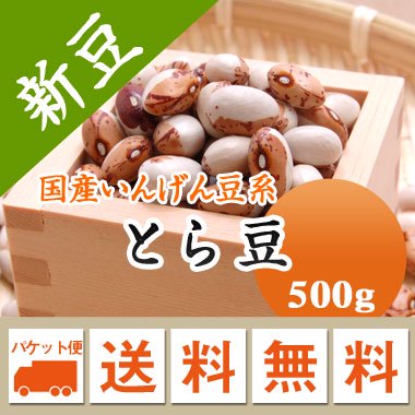 ◇特徴北海道では高級菜豆と呼ばれています。へその周囲に濃黄褐色と淡黄褐色の班絞が入っているのが特徴です。模様の入り具合が虎に似ていることから"とら豆"と称されます。主な産地は胆振、北見地方です。◆栄養アミノ酸から作られている「たんぱく質」は体を構成する基本成分です。精白米や小麦粉などの穀類には100g当り10%以下に対し、とら豆には約20gも含まれており、さらに脂肪含有率がたったの2%と極めて低い食品の1つとして注目されています。豆が柔らかく主産地の北海道では「煮豆の王様」と呼ばれています。◇こんな料理におすすめ煮豆
