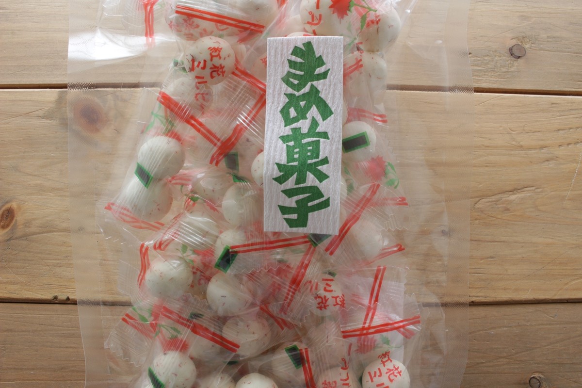 落花生に米粉・小麦粉を巻き、煎ってミルク・紅花の花をかけました。カリッとした食感が特徴です。ほど良い甘さが人気です♪