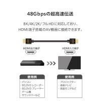 ・最大8K/60Hzの解像度に対応したHDMIケーブルです。Ultra High Speed HDMI Cable with Ethernet認証済みで、映像信号と音声信号に加え、100Mbpsのイーサネット通信を実現します。