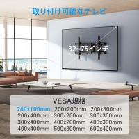 ・【32〜75インチのテレビに対応】*製品改良のため、仕様が写真と異なる場合があります。※次の条件を同時に満たす必要があります。(1)サイズ:32〜75インチ以内。(2)重量:60kg以内。(3)VESA規格(テレビ背面のネジ穴の間隔):ネジ穴の間隔は横が200〜600mm以内、縦が100〜400mm以内が必要です(100 × 100に対応しません)。※テレビの背面に段差がある場合は、梱包に付属のスペーサーをご使用ください。スペーサーはテレビと金具の間隔をあけ、段差を避けたり配線しやすくする部品です。ボルトとスペーサーがテレビに不適合の場合は、PERLESMITHサポートに連絡してください。