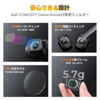 ・【磁気式で着脱が超簡単?】磁力により脱着できるタイプなので、一般的なフィルターとは違い、K&F Concept DJI OSMO Pocket 3用フィルターの脱着がとても手軽で短時間に行なえます。DJI OSMO Pocket 3に特別に設計されており、記録に欠かせない広角レンズフィルターです。