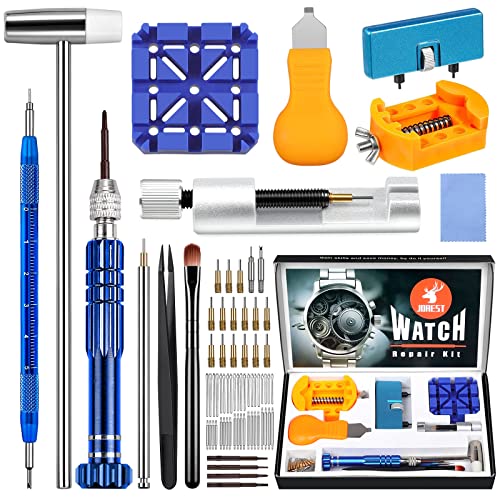 ・【時計修理工具キット】-- JOREST時計修理工具キットには、時計の修理に必要な一般的な工具が含まれており、時計ストラップの調整と交換、時計カバーの開封、時計の電池交換、ガスケットなど。自宅で時計の問題を解決し、高価な修理費用を節約するのに役立つ詳細な操作マニュアルがあります。