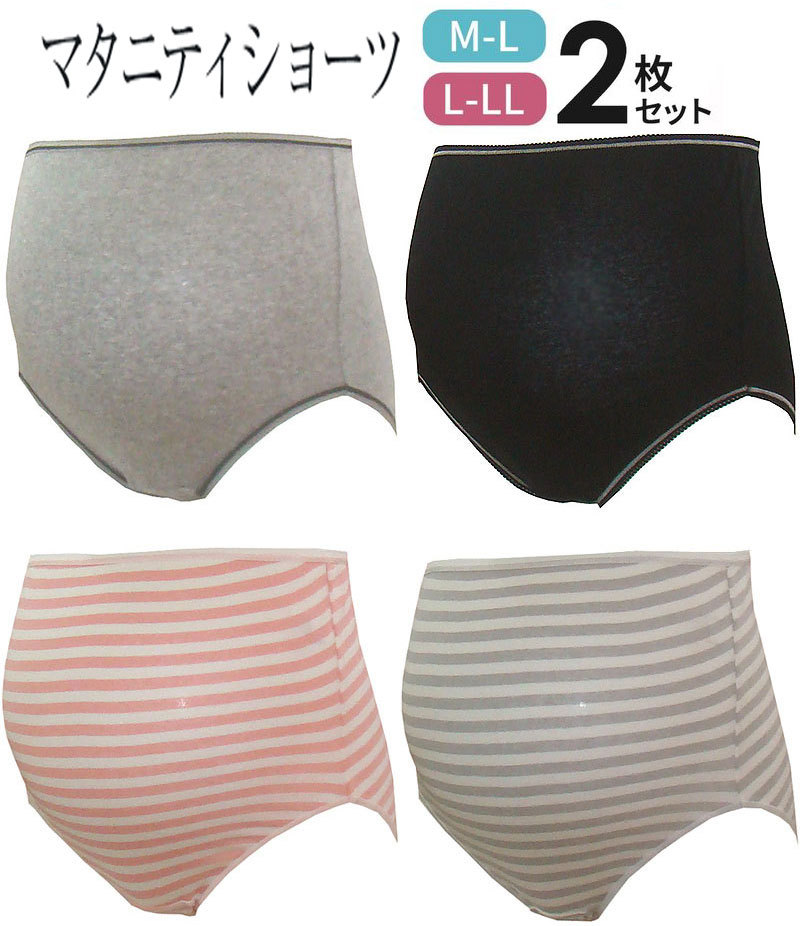 【送料無料】2枚組 マタニティ ショーツ(色違いお買得セット)産前 マタニティー マタニティショーツ2枚組 M〜L L〜LL サイズ 入院準備 綿100% 出産準備