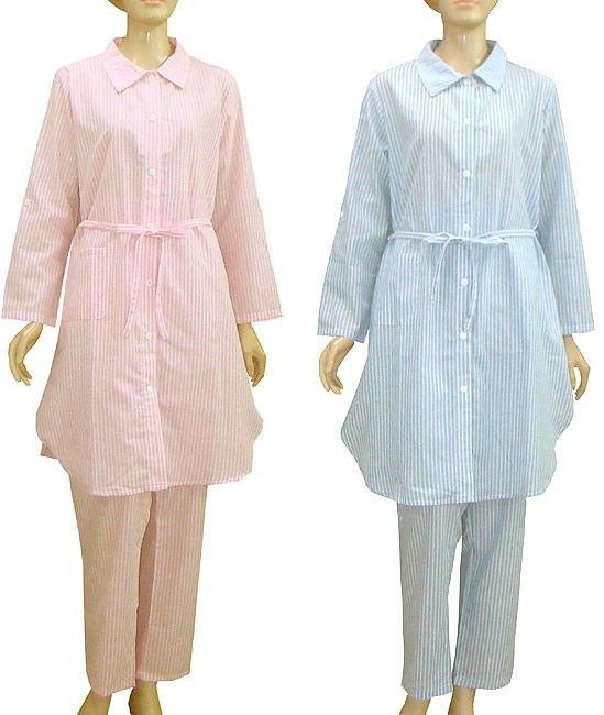 先染ストライプ柄でロングシャツスタイルのマタイティパジャマ