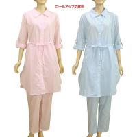 【春夏 マタニティパジャマ】先染ストライプ・袖ロールアップ マタニティ パジャマ(フロントスナップ授乳)ママの声から生まれてたパジャマ
