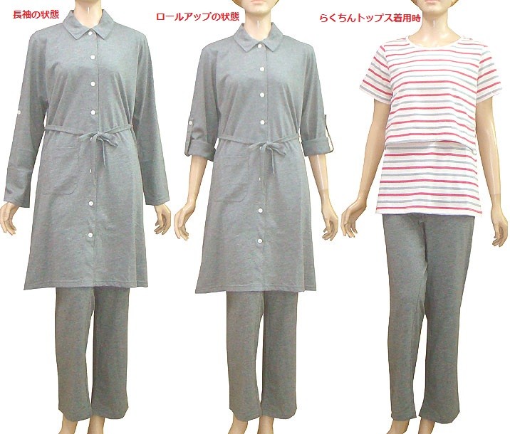 季節の変化や室内の温度のより長袖・ロールアップの使い分け。また点滴、洗い物時に便利