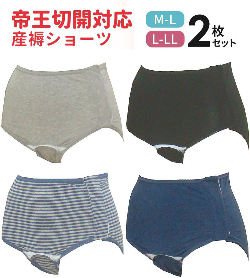 メール便送料無料 帝王切開用 2枚組 産褥ショーツ 全開タイプ M-L L-LL サイズ<br>出産準備 入院準備 2枚 セット 帝王切開 悪露 産後 産褥 マタニティ