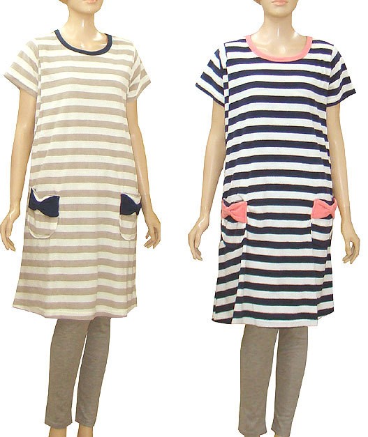 春夏 マタニティ パジャマ パイル素材ボーダー柄 半袖マタニティ ラウンジ パジャマ(授乳口付)レギンスタイプ /ラウンジウエア/