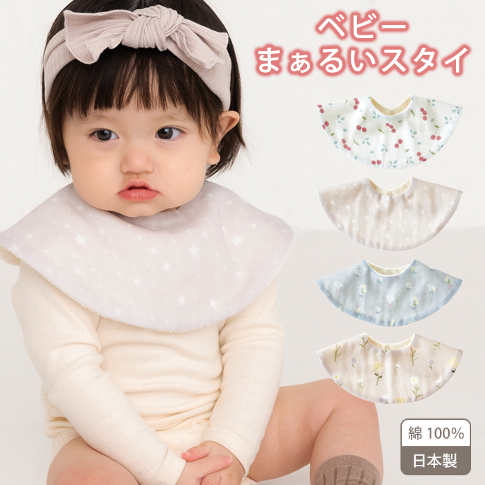 ベビー まぁるいスタイ 赤ちゃん よだれかけ 360度 まるい スタイ ガーゼ 綿 100% 日本製
