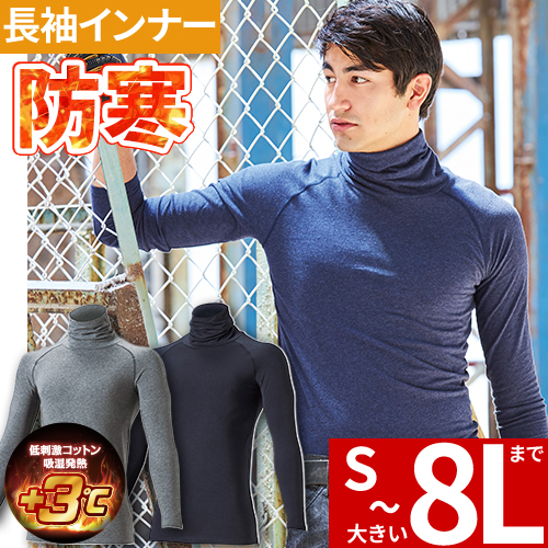 ◎商品説明:低刺激コットンの優しい肌触りと+3度の吸湿発熱で高い温度上昇を実現。首元まで暖かいタートルネックタイプ